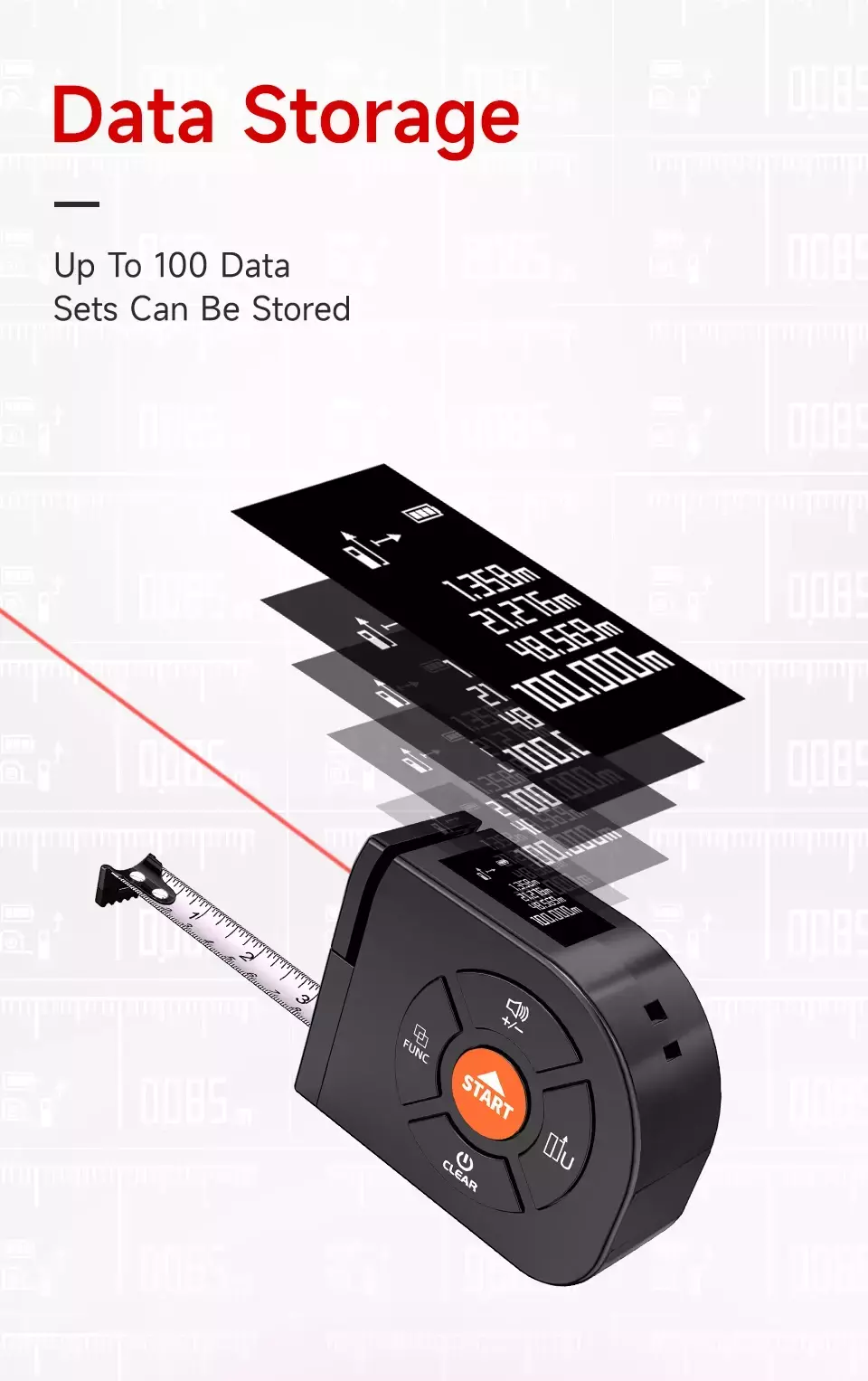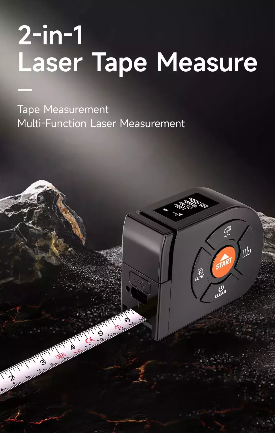 📏 2 em 1 Inteligente – Combina fita métrica tradicional + medidor a laser ultramoderno de até 100 metros