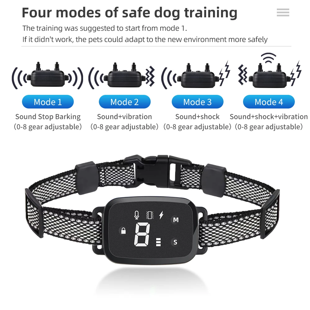 ⚡ 3 modos de treinamento – Escolha entre choque, vibração ou som para corrigir comportamentos.