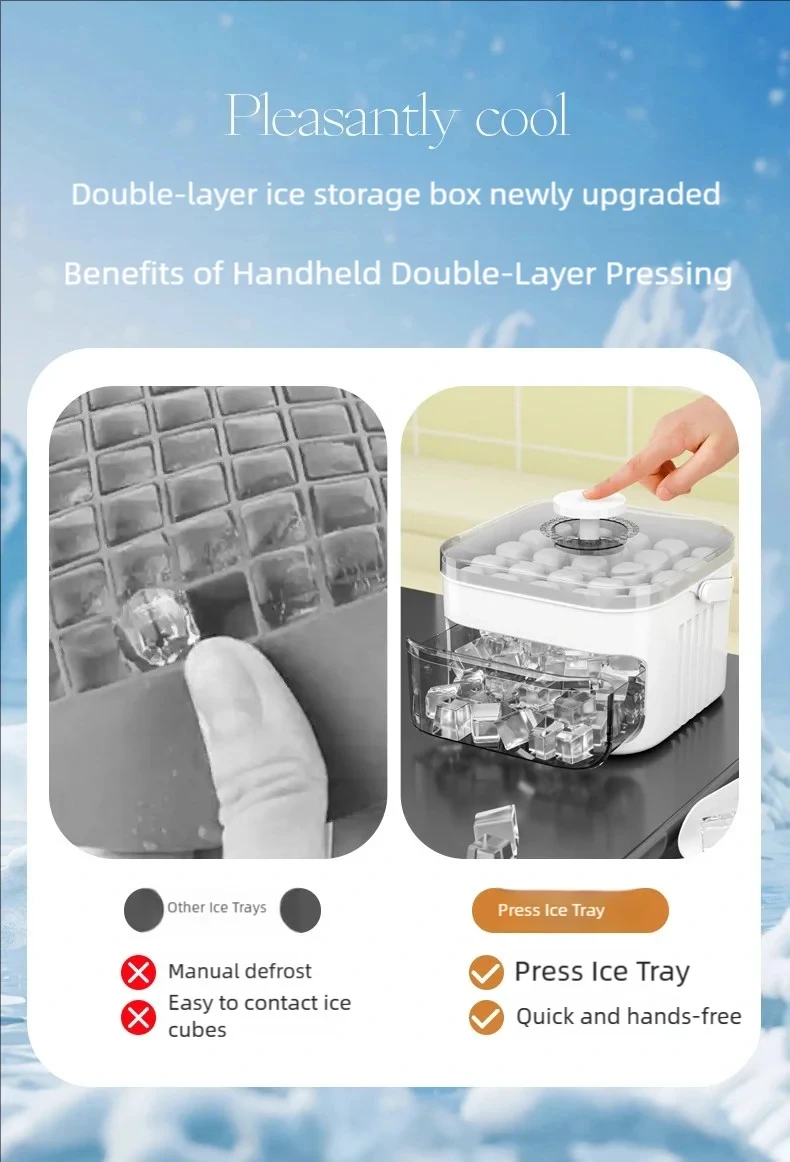 🧊 Grande Capacidade – 50 cubos de gelo de uma só vez, ideal para reuniões familiares, festas e piqueniques.
