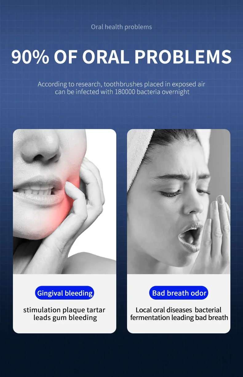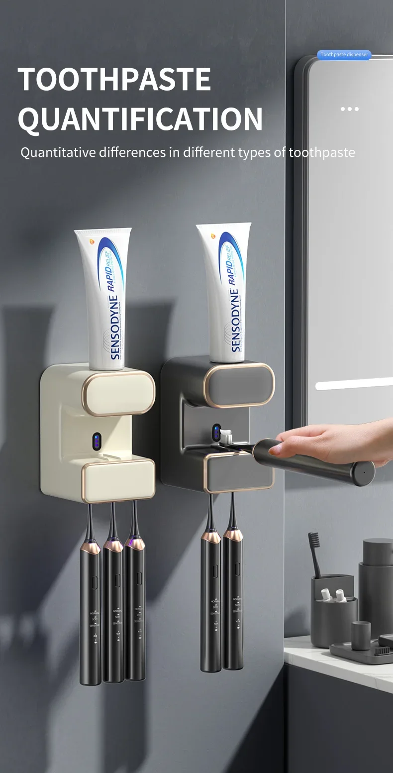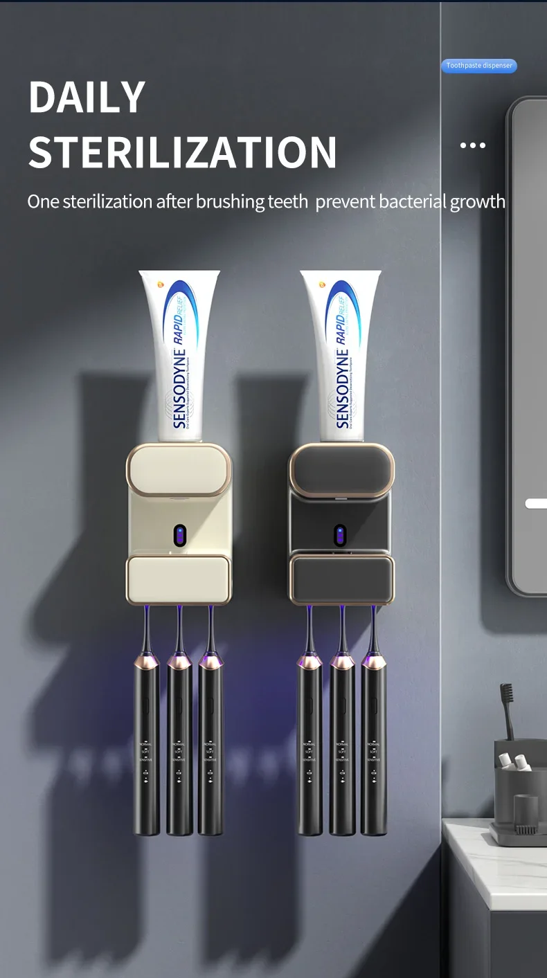 Mantenha suas escovas de dentes sempre limpas e organizadas com o Suporte de Escova TUUTH. Equipado com tecnologia UV de esterilização e dispensador automático de pasta de dente, ele une praticidade, higiene e inovação em um único produto.